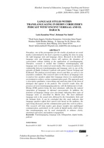 Language styles within translanguaging in Deddy Corbuzier's podcast with Vincent Verhaag and El Barack.