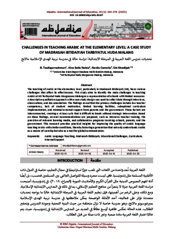 Challenges in teaching Arabic at the elementary level: A case study of Madrasah Ibtidaiyah Tarbiyatul Huda Malang.