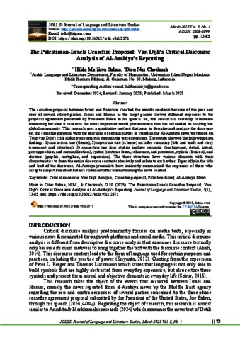 | Keywords: | Critical discourse; Van DijkAnalysis; Ceasefire proposal; Palestine-Israel; Al-Arabiya News |