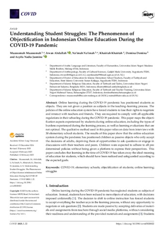 Understanding student struggles: The phenomenon of objectification in Indonesian online education during the COVID-19 pandemic.
