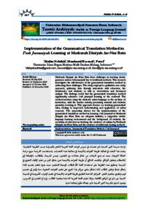 Implementation of the grammatical translation method in i'rob jurumiyah learning at Madrasah Diniyah An-Nur Batu.
