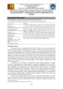 Inner conflict plays a crucial role in character and story development in literature, particularly in novels. This research highlights how inner conflict arises when fundamental human needs such as physiological, safety, belonging, self-esteem, and self-actualization are unmet or in conflict. Using a descriptive qualitative method, the study analyzes Aya Mohrat’s novel Ilaika Haruufi and draws on related secondary articles. Data are analyzed through triangulation techniques, involving data reduction, presentation, and conclusion. Findings reveal that inner conflicts in Ilaika Haruufi, including sadness, disappointment, stress, frustration, trauma, and confusion, stem from unmet basic needs. These conflicts deepen the psychological complexity of the main character and shape the narrative and themes expressed by the author.