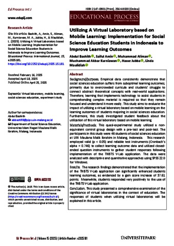 Utilizing a virtual laboratory based on mobile learning: Implementation for social science education students in Indonesia to improve learning outcomes.