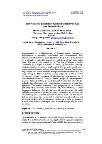 | Keywords: | Arab Women; Cyberfeminism; Patriarchy; Revolution |