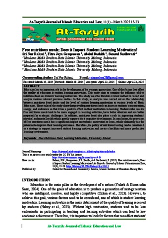 Education has an important role in the development of the younger generation. One of the factors that affect the quality of education is student learning motivation. This study aims to examine the influence of free nutritious food on students' learning motivation. This study uses the literature review method to collect and analyze various relevant previous studies. In this study, an analysis was carried out on the relationship between nutritious food intake and the level of student learning motivation at various levels of Basic Education. The results of the study show that providing nutritious food can increase students' concentration, energy, and endurance so that it has a positive effect on their motivation in learning. Students who receive free nutritiousmeals tend to be more engaged in learning activities, have better attention and are better prepared for academic challenges. In addition, nutritious food also plays a role in improving students' physical and mental health which greatly supports their cognitive development. In conclusion, the provision of free nutritious meals has a significant impact on students' motivation to learn, which ultimately has the potential to improve their learning outcomes. Therefore, the policy of nutritious feeding can be considered as a strategy to support increased student learning motivation and create a healthier and more productive learning environment.