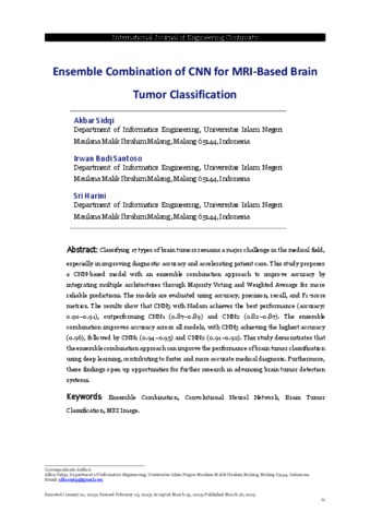 | Keywords: | Ensemble Combination; Convolutional Neural Network; Brain Tumor Classification |