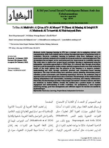 Ta’līm Al-Mufrādāt Al Qāim A’lā Al Masyrū’ Fī Dhoui Al Manhaj Al Istiqlālī Fī Al Madrasah Al Tsānawīah Al Hukūmiyyah Batu.