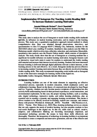 Implementation of Instagram for teaching Arabic reading skill to increase students learning motivation.