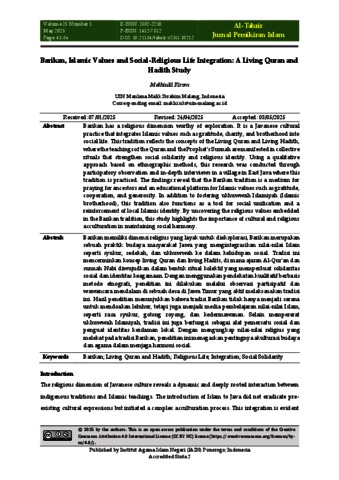 | Keywords: | Barikan; Living Quran and Hadith; Religious Identity; Integration; Social Solidarity |