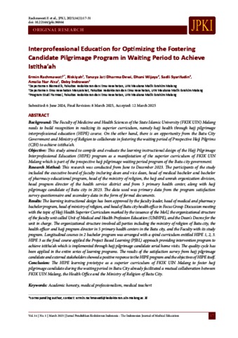 Interprofessional education for optimizing the fostering candidate pilgrimage program in waiting period to achieve istitha’ah.