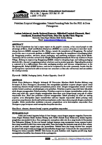 | Keywords: | ekonomi; ekonomi kreatif; ecoprint; pengabdian masyarakat |