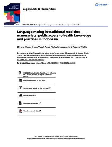 Language mixing in traditional medicine manuscripts: Public access to health knowledge and practices in Indonesia.