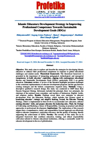 Islamic educators development strategy in improving professional competence towards Sustainable Development Goals (SDGs).