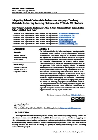 Integrating Islamic values into Indonesian language teaching materials: Enhancing learning outcomes for 2nd grade MI students.