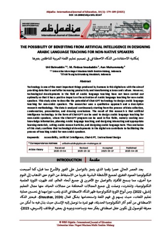 The possibility of benefiting from artificial intelligence in designing Arabic language teaching for non-native speakers.