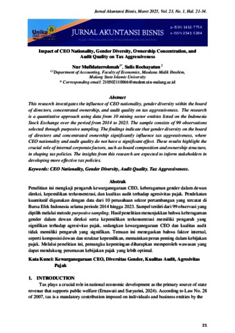 | Keywords: | CEO Nationality; Gender Diversity; Audit Quality; Tax Aggressiveness. |