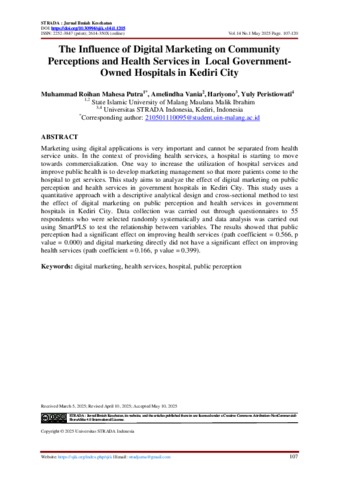 The influence of digital marketing on community perceptions and health services in local government-owned hospitals in Kediri city.