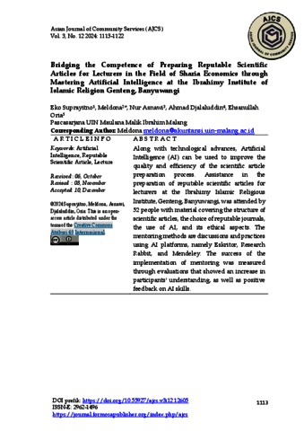 Bridging the competence of preparing reputable scientific articles for lecturers in the field of sharia economics through mastering artificial intelligence at the Ibrahimy Institute of Islamic Religion Genteng, Banyuwangi.