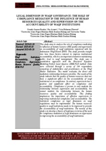 Legal dimension in waqf governance: The role of compliance mediation in the influence of human resources quality and supervision on the accountability of waqf institutions.