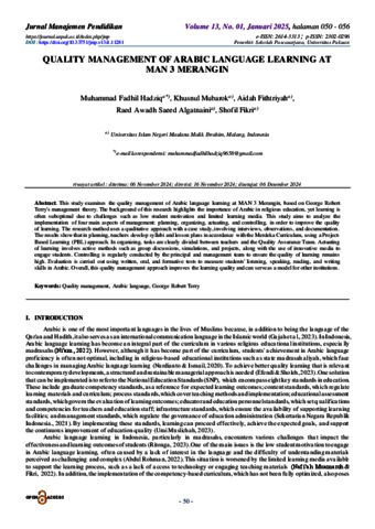 Quality management of Arabic language learning at MAN 3 Merangin.