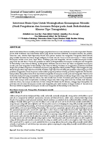 Intervensi brain gym untuk meningkatkan kemampuan menulis: Studi pengukuran dan asesmen belajar pada anak berkebutuhan khusus tipe tunagrahita.
