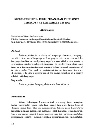 Sosiolinguistik: Teori, peran, dan fungsinya terhadap kajian bahasa sastra.