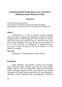 Sosiolinguistics is a study of language character, language variation, function of language, and language use in interaction and the language function in society. Language for a man of letters is a media to express ideas and present specific messages to society. These ideas come from intuition, imagination, and a man of letters personal experiences of in his society. The goal of sociolinguistics in language literature discussion is to give a description of the social condition of a society related to its language.
