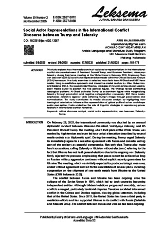 This study explores how the media construct social actor representations in the international conflict discourse between US President, Donald Trump, and Ukrainian President, Volodymyr Zelensky, during their tense meeting at the White House in February 2025. Employing Theo van Leeuwen's (2013) Social Actor Representation model within the Critical Discourse Analysis (CDA) framework, the study examines six selected news texts from Al-Ghad and BBC News Arabic. Using a qualitative approach and interactive model analysis by Miles, Huberman, and Saldana (2014), this research identifies key strategies of inclusion and exclusion used by each media outlet to position the two political figures. The findings reveal contrasting ideological patterns: Al-Ghad activates Trump as a dominant figure while marginalizing Zelensky through passivation and negative categorization; conversely, BBC News Arabic emphasizes Zelensky's agency while softening Trump’s image through passivization and nominalization. This study contributes to media discourse analysis by highlighting how ideological orientations influence the representation of global political actors and shape public perception. It also underlines the role of linguistic strategies in reproducing power relations in international conflict narratives.