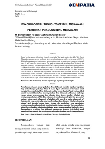 | Keywords: | Ibnu Miskawaih; Pemikiran Psikologi; Psikologi Islam |
