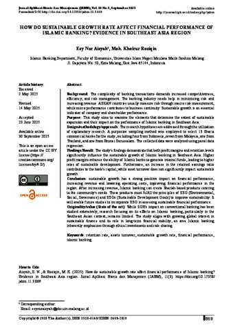 How do sustainable growth rate affect financial performance of Islamic banking? Evidence in Southeast Asia region.