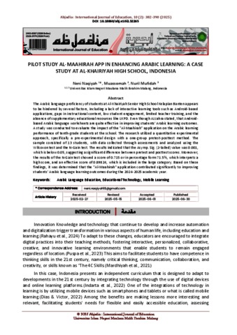 Pilot study Al-Maahirah app in enhancing Arabic learning: A case study at Al-Khairiyah High School, Indonesia.