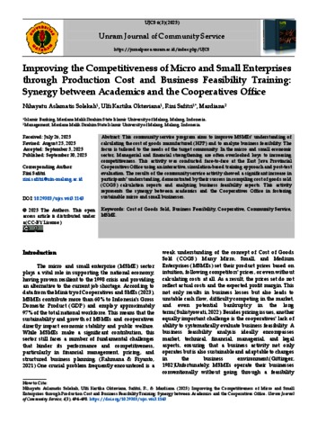Improving the competitiveness of micro and small enterprises through production cost and business feasibility training: Synergy between academics and the cooperatives office.