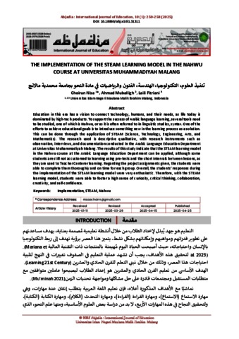 Nisa, Choirun, Mubaligh, Ahmad and Fitriani, Laily (2025) The implementation of the STEAM learning model in the Nahwu course at Universitas Muhammadiyah Malang. Abjadia: International Journal of Education, 10 (1). pp. 250-258. ISSN 2443-0587