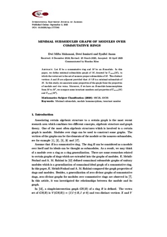 Mahanani, Dwi Mifta, Ismiarti, Dewi and Anam, Syaiful (2025) Minimal submodules graph of modules over commutative rings. International Electronic Journal of Algebra. ISSN 1306-6048