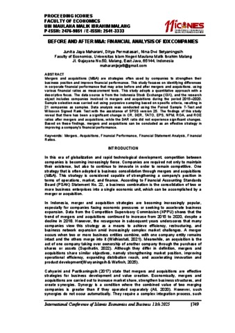 | Keywords: | Mergers; Acquisitions; Financial Performance; Financial Statement Analysis; Financial Ratios |