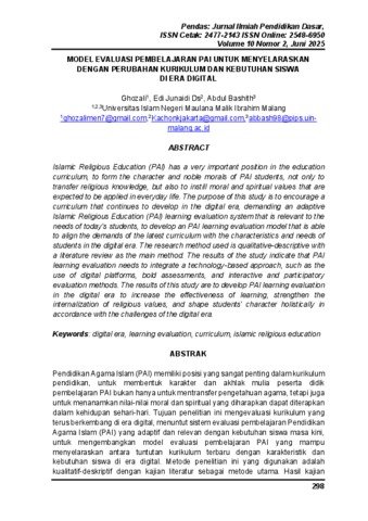 | Keywords: | digital era; learning evaluation; curriculum; islamic religious education |
