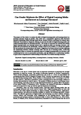 | Keywords: | Digital Learning Media; Learning Interest; Learning Outcomes, Gender |