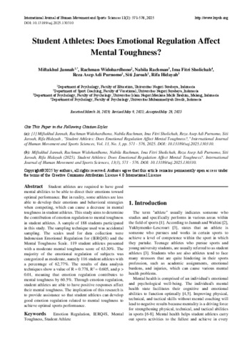 | Keywords: | Emotion Regulation; IERQ4S; Mental Toughness; Student Athlete |