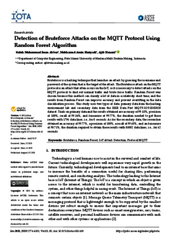 | Keywords: | Bruteforce; Random Forest; IoT Attack Detection; Protocol MQTT |