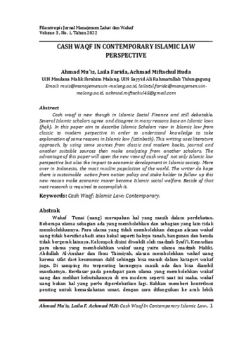 | Keywords: | Cash Waqf; Islamic Law; Contemporary |