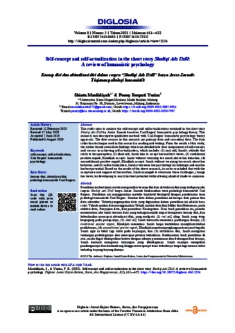 Self-concept and self-actualization in the short story Shodiqi Adz Dzill: A review of humanistic psychology.