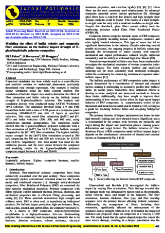 Modeling the effect of bullet velocity and composite fiber orientation on the ballistic impact strength of E-glass/ isophthalic polyester composites.