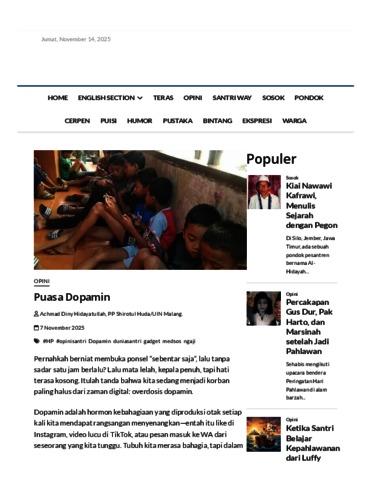 https://duniasantri.co/puasa-dopamin/?singlepage=1, Kota Malang.