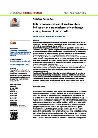 | Keywords: | Connectedness; Indonesia; Russia-Ukraine Conflict; Sectoral Stock Indices |