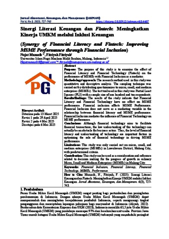 | Keywords: | Financial Inclusion; Financial Literacy; Financial Technology; MSMEs; Performance |