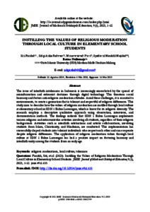 Instilling the values of religious moderation through local culture in elementary school students.
