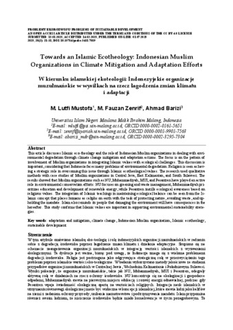| Keywords: | adaptation and mitigation, climate change, Indonesian Muslim organization, Islamic ecotheology, sustainable development |