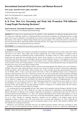 | Keywords: | live streaming; flash sale promotion; purchase decision |