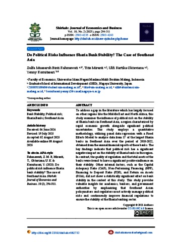 | Keywords: | Bank Stability; Political risk; Sharia Banks; Southeast Asia |