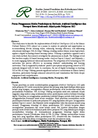 Peran penggunaan media pembelajaran berbasis artificial intelligence dan persepsi siswa madrasah aliyah pada pelajaran SKI.